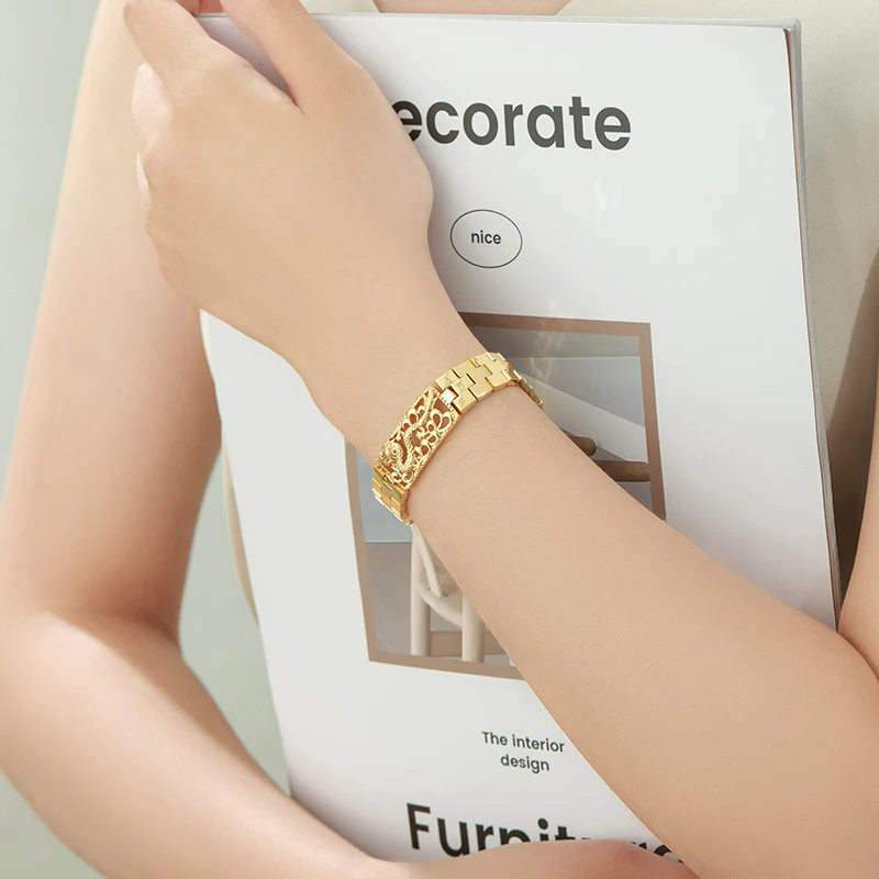 The Hollow Dragon Engraved Gold Bracelet exudes a bold and domineering style, perfect for both men and women who appreciate statement accessories. Crafted from high-quality alloy and electroplated in gold, it features intricate hollow dragon engravings that highlight strength and elegance. Its square design adds a modern, edgy touch, while the durable construction ensures long-lasting wear. Stylish, fierce, and luxurious—this bracelet is an ideal choice for those who want a standout, high-end accessory with a powerful aesthetic.