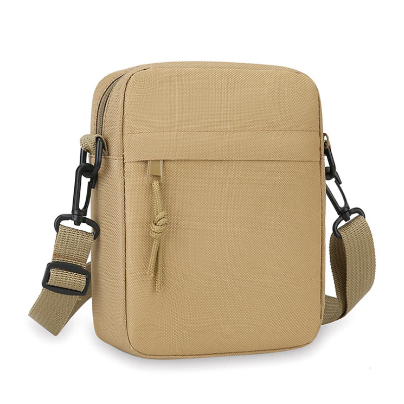This lightweight crossbody bag features a clean, rectangular silhouette with rounded corners for a modern and approachable look. The exterior is crafted from a durable, high-density woven fabric that provides a subtle tactile texture throughout the body. A discreet horizontal zipper pocket is integrated into the front panel, featuring a unique knotted cord pull tab for a handcrafted touch. For maximum portability, the bag is equipped with a wide, adjustable webbing strap attached by secure metallic swivel clips, allowing for comfortable over-the-shoulder or across-the-chest wear. With its slim profile and functional design, this "different" accessory is an ideal choice for carrying daily essentials while maintaining a minimalist aesthetic.