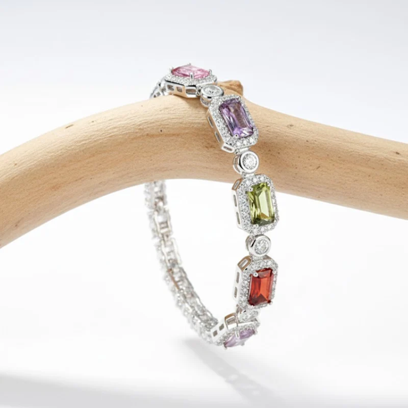 The Sugar Cube Gemstone Luxury Bracelet captures the essence of light luxury with its delicate cube-shaped gemstone accents. Designed for women who appreciate elegance and modern charm, this bracelet combines refined craftsmanship with a minimalist aesthetic. The sparkling gemstones add a subtle yet captivating touch, making it perfect for both everyday wear and special occasions. Stylish, graceful, and unique—this bracelet embodies effortless sophistication.